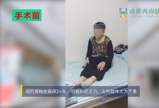 几年前,患者胡女士的左侧肢体出现抖动、乏力、僵硬症状,日渐加重影响走路。她在攀枝花当地某医院被诊断为帕金森病,口服美多芭、金刚烷胺等药物治疗。吃药后症状明显好转,但药效逐渐减退,维持时间缩短,无法控制肢体抖动、乏力和僵硬症状。增加药量后,药效仍然不佳。随着病程发展,她连躺在床上翻身都困难。2019年1月,胡女士出现步态冻结现象。她描述那种感觉就像“刹车松不开”。