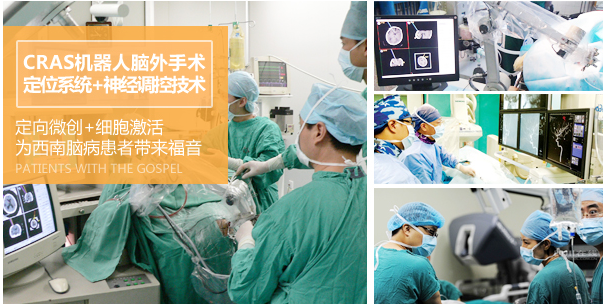 “CRAS”脑立体定向仪:该方法操作简单,大脑图像重建花30秒,颅内病灶的三维重建花20秒,而且可以观察病灶的位置、体积、大小、与周围脑组织的比邻关系,手术路径规划花15秒,20分钟可结束手术。
