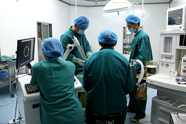 脑立体定向仪技术是治疗听神经瘤的新方法,临床获得了良好的治治疗果。在脑立体定向手术中,该系统可以取代传统的定向仪框架,通过识别贴附于患者头部的标志点,建立相应的三维坐标体系,并可标示出靶点位置和穿刺轨迹。智能机械臂按照模拟轨迹固定穿刺方向,为术者提供准确导航和操作平台。手术创伤小,,基本不出血;手术入孔直径约5毫米,整个手术过程患者在清醒状态下进行,做到了真正意义上的、微创手术。